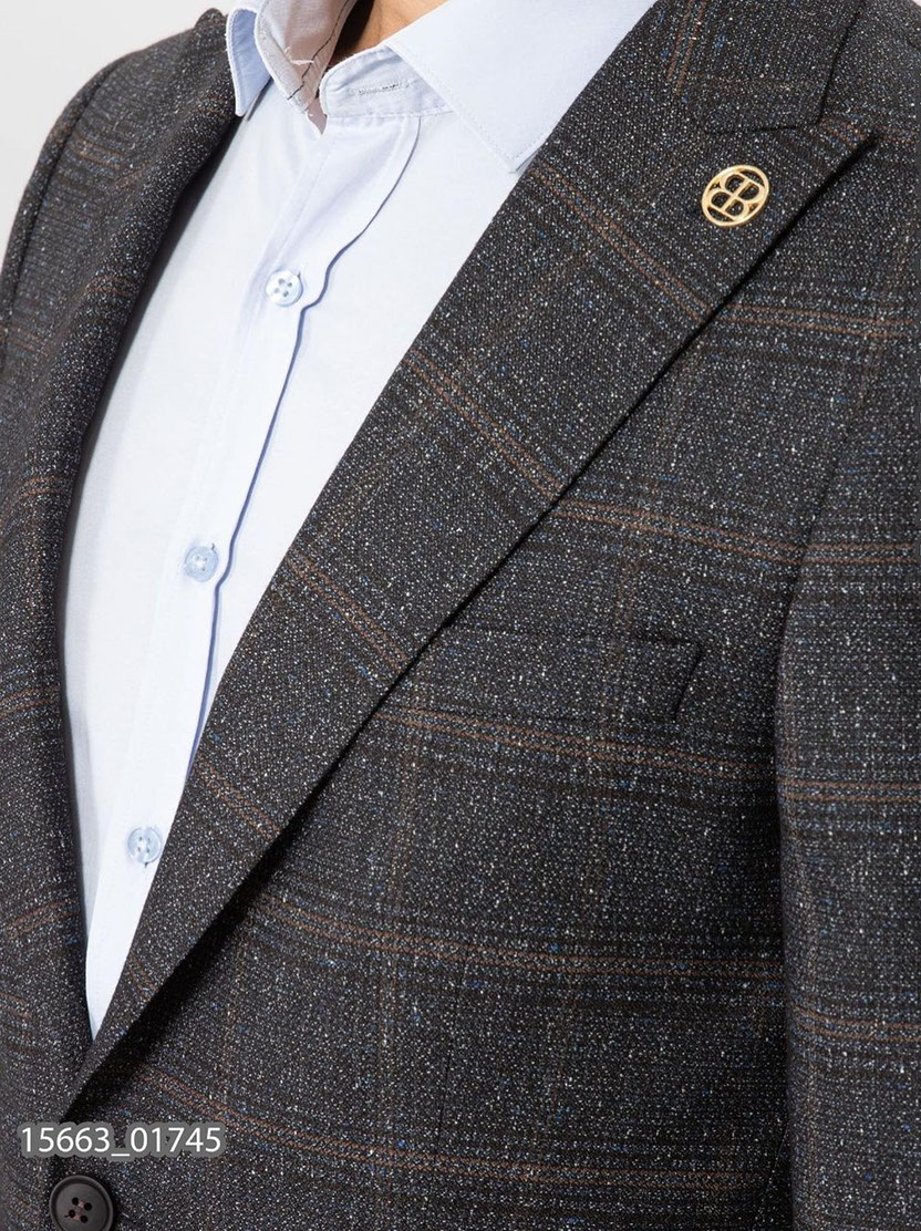 Современное лекало, высокие стандарты производства дают безупречную посадку по фигуре, а высококачественная дорогая ткань сложного плетения в клетку гарантирует стильный внешний вид владельцу этого пиджака.