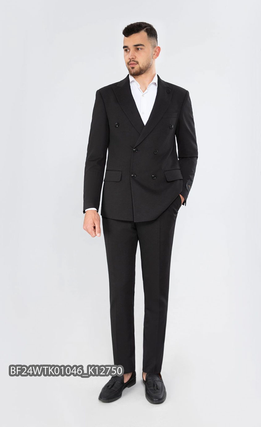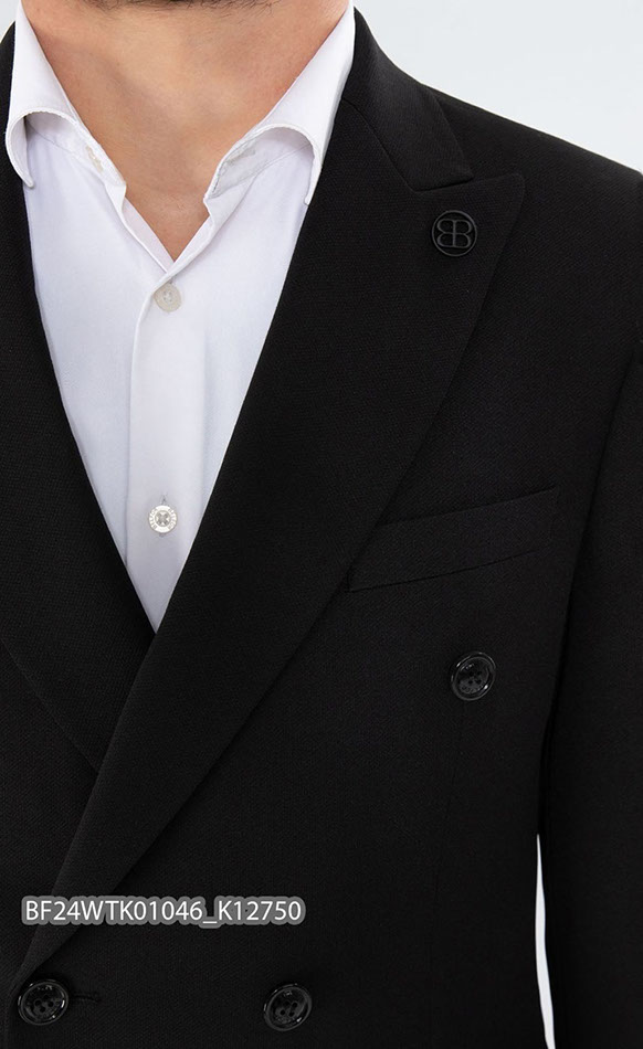 Материал черного цвета с мелкой структурой гарантирует стильный и респектабельный внешний вид, а stretch-ткань (эффект трикотажного полотна) дает дополнительную повышенную степень комфорта и удобства.