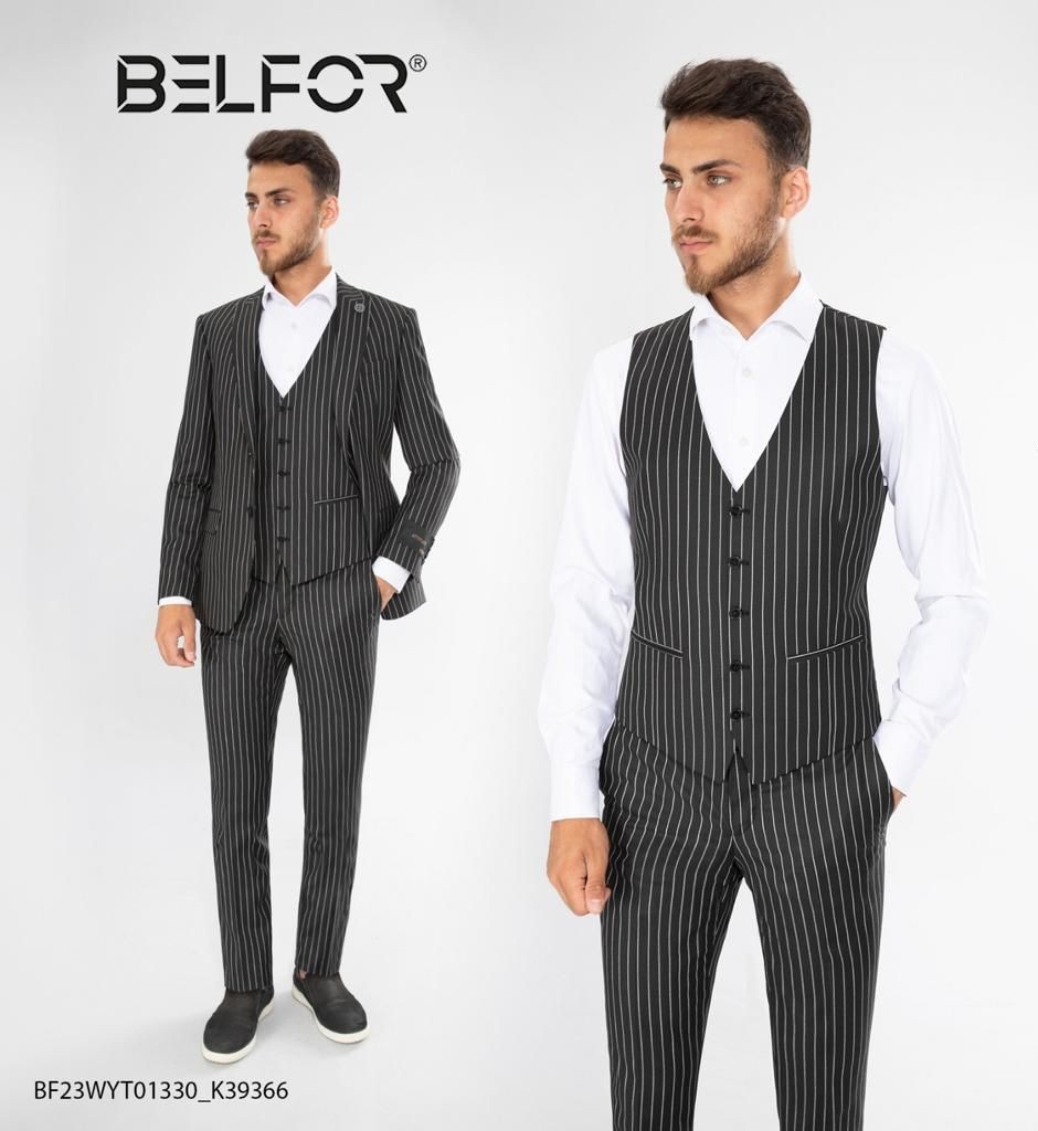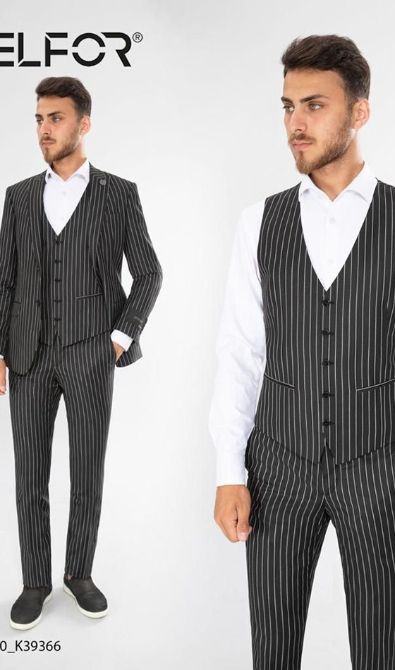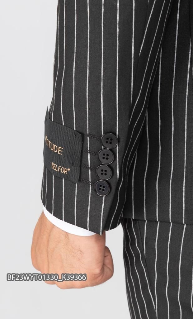 Гладкая ткань черного цвета с выраженной элегантной полоской гарантирует супер-стильный внешний вид.