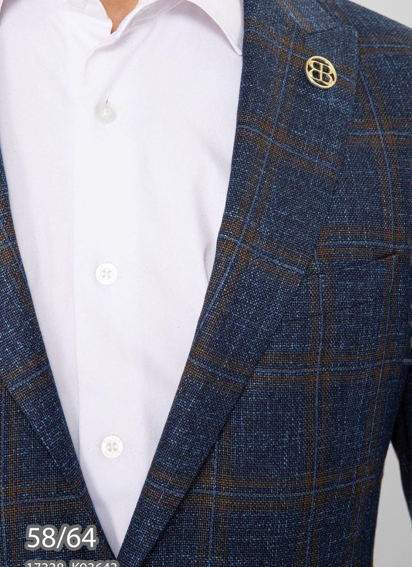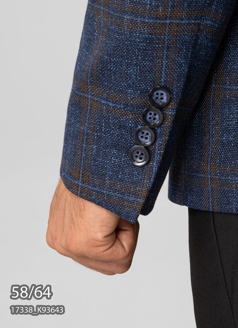 Современное лекало, высокие стандарты производства дают безупречную посадку по фигуре, а ткань сложного плетения в клетку гарантирует стильный внешний вид владельцу этого пиджака.