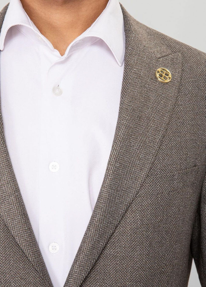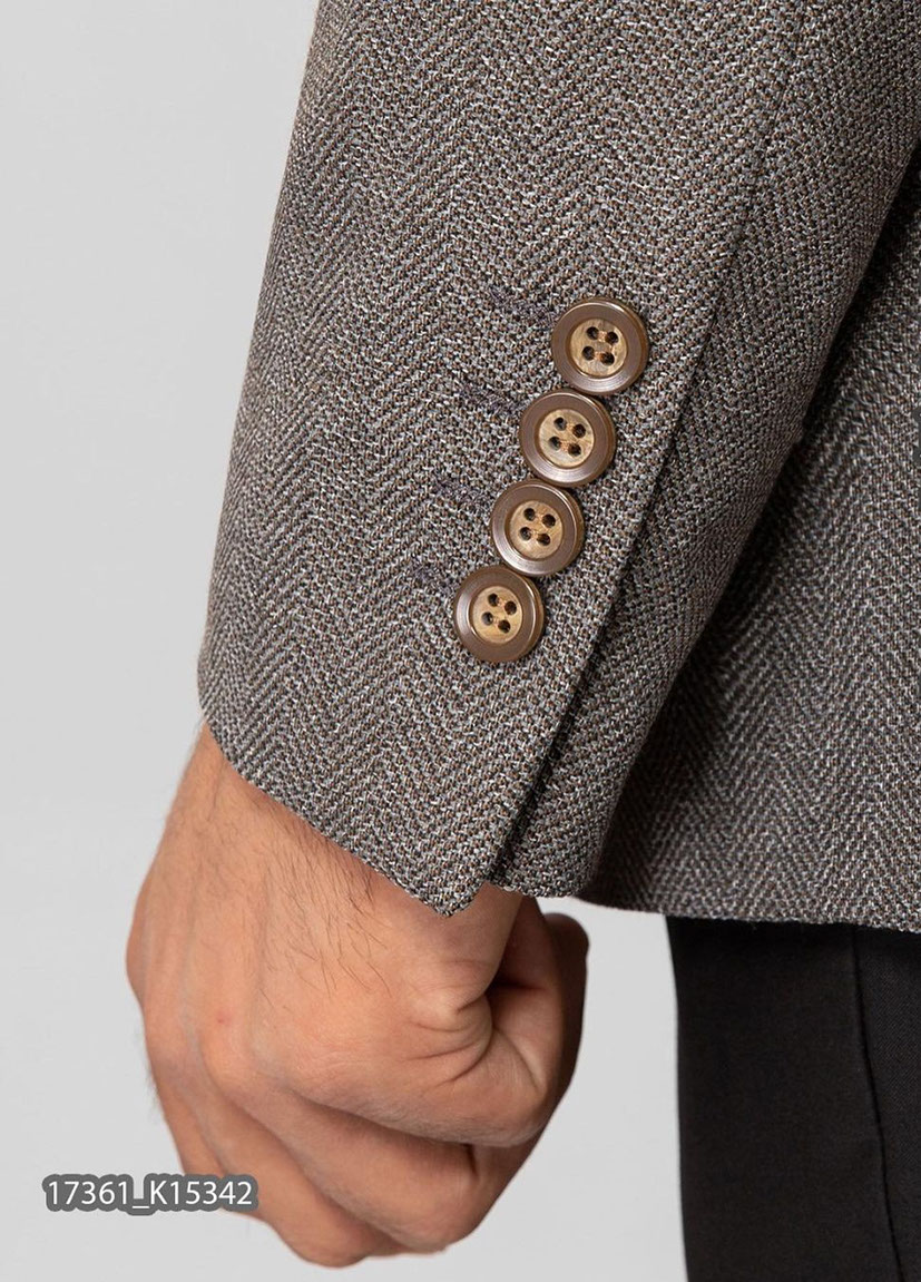 Современное лекало, высокие стандарты производства дают безупречную посадку по фигуре, а ткань c фактурой твида в едва уловимую елочку гарантирует стильный внешний вид владельцу этого пиджака.