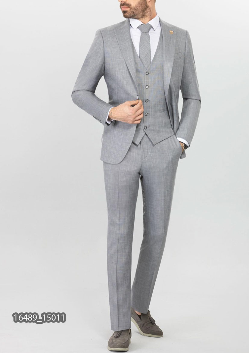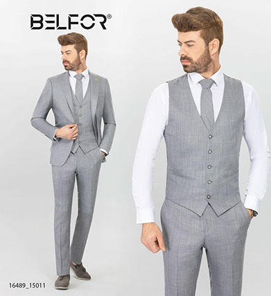 Современное лекало, высокие стандарты производства дают безупречную посадку по фигуре, а ткань сложной выделки благородного светло-серого цвета гарантирует стильный и респектабельный внешний вид владельцу этого костюма.