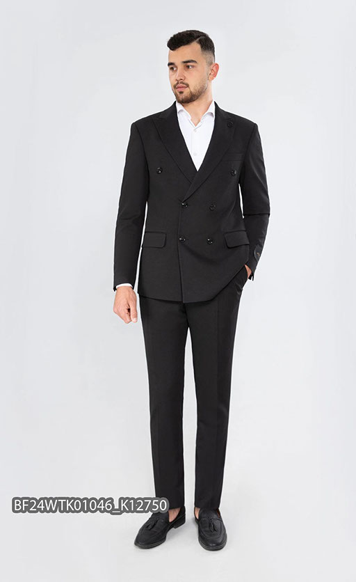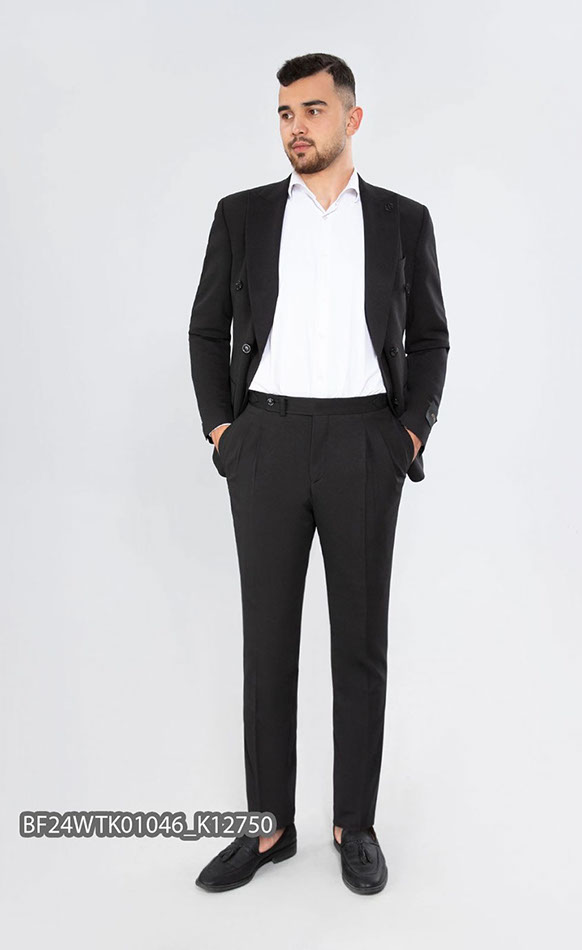 Материал черного цвета с мелкой структурой гарантирует стильный и респектабельный внешний вид, а stretch-ткань (эффект трикотажного полотна) дает дополнительную повышенную степень комфорта и удобства.
