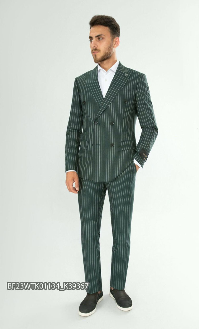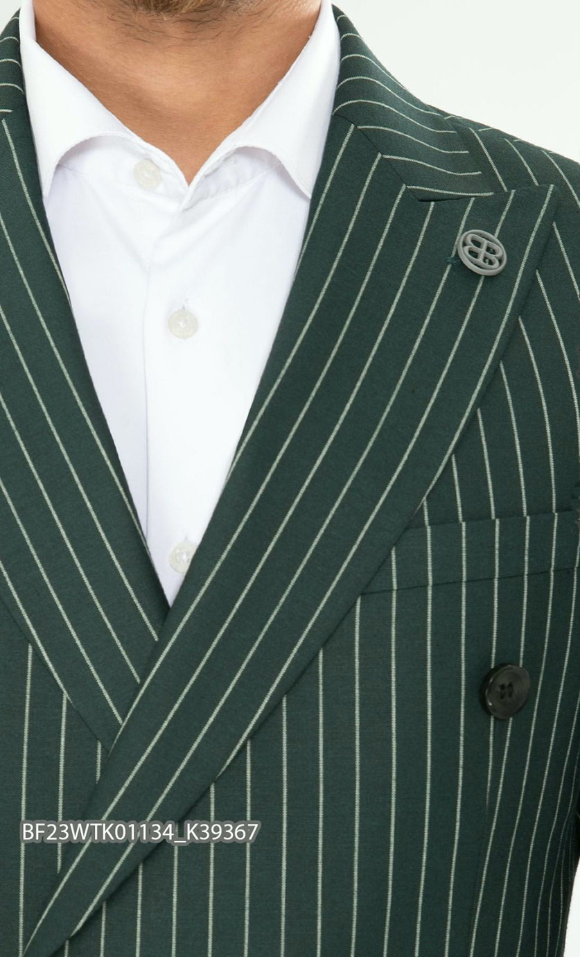 Гладкая ткань изумрудно-зеленого цвета с выраженной элегантной полоской гарантирует стильный и респектабельный внешний вид.