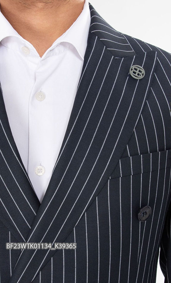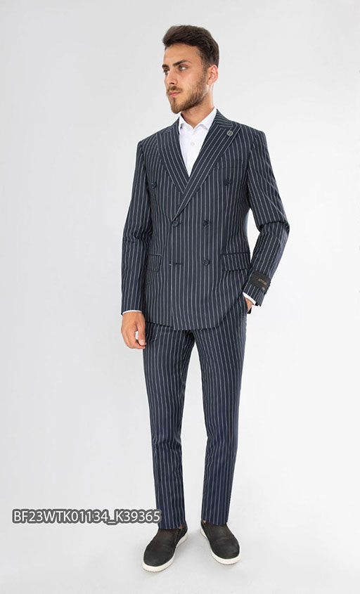 Гладкая ткань темно-синего цвета с выраженной элегантной полоской гарантирует стильный и респектабельный внешний вид.