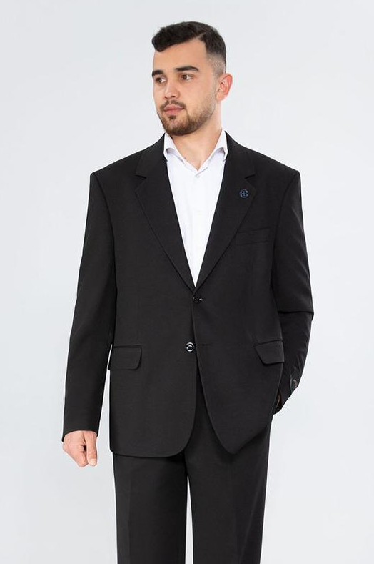 Черный однобортный пиджак на две пуговицы в модном и стильном варианте Oversize (оверсайз - свободный мешковатый крой).