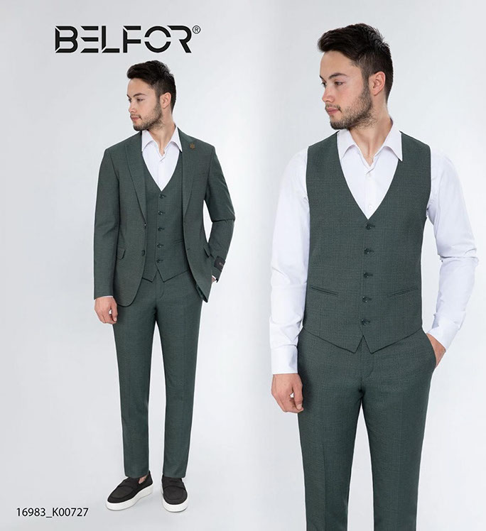 Высококачественная ткань сложного тёмно-зелёного оттенка с красивой текстурой гарантирует стильный и респектабельный внешний вид.