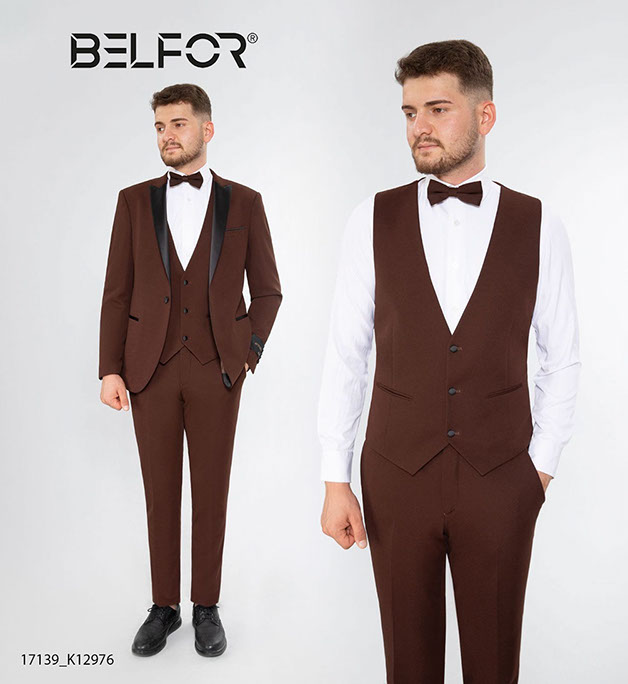 В комплекте: пиджак, жилет, брюки (галстук-"бабочка" в подарок).